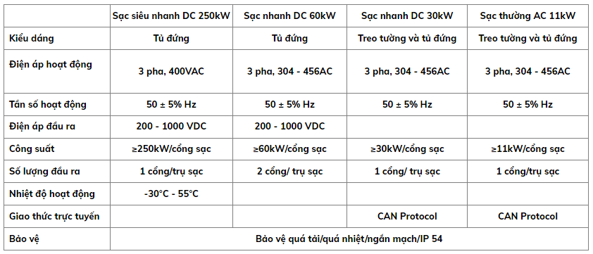 – Trụ sạc siêu nhanh DC 250kW