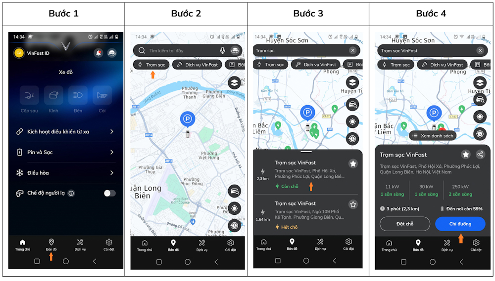 – Bước 3: Khách hàng lựa chọn trạm sạc còn chỗ ở gần và phù hợp nhất.