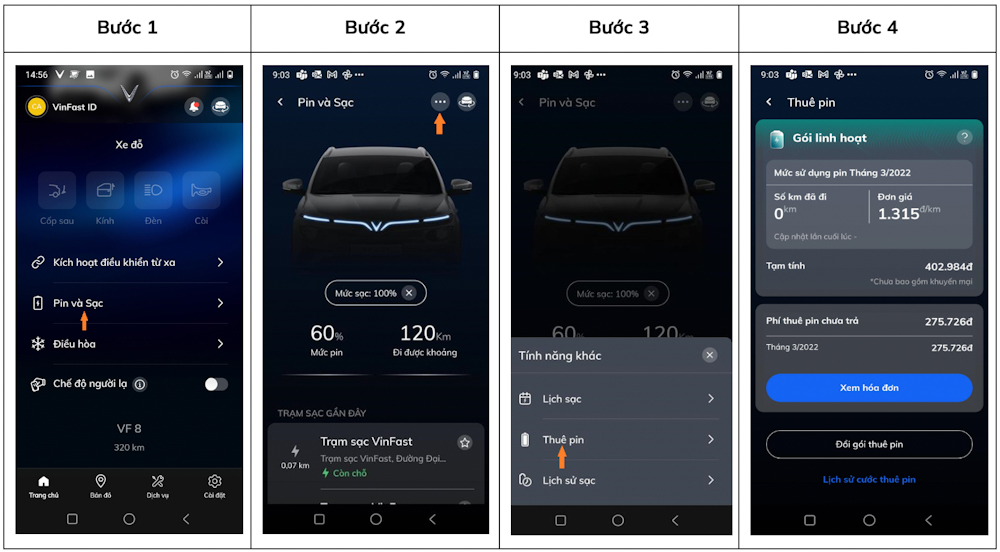 – Cách thanh toán phí sạc và thuê pin
