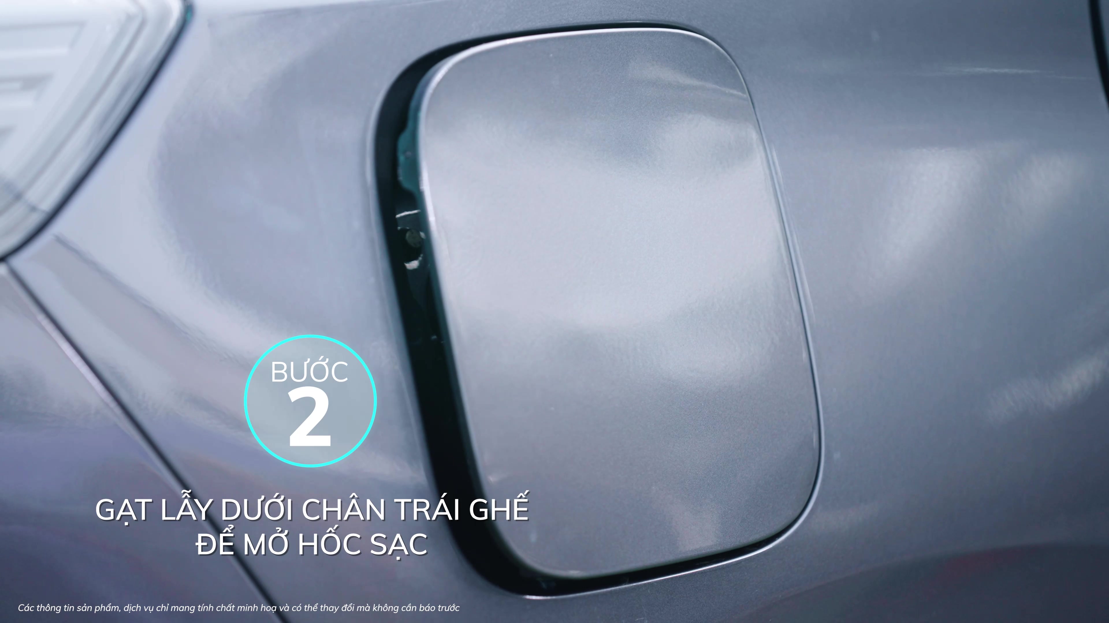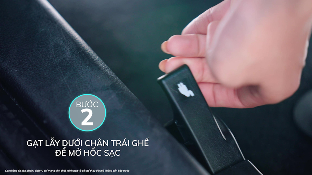 Bước 2: Đỗ xe vào vị trí an toàn, sau đó gạt lẫy dưới chân bên trái ghế lái để mở hốc sạc xe.