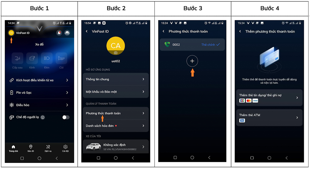3.4. Hướng dẫn cách thêm phương thức thanh toán vào ứng dụng VinFast