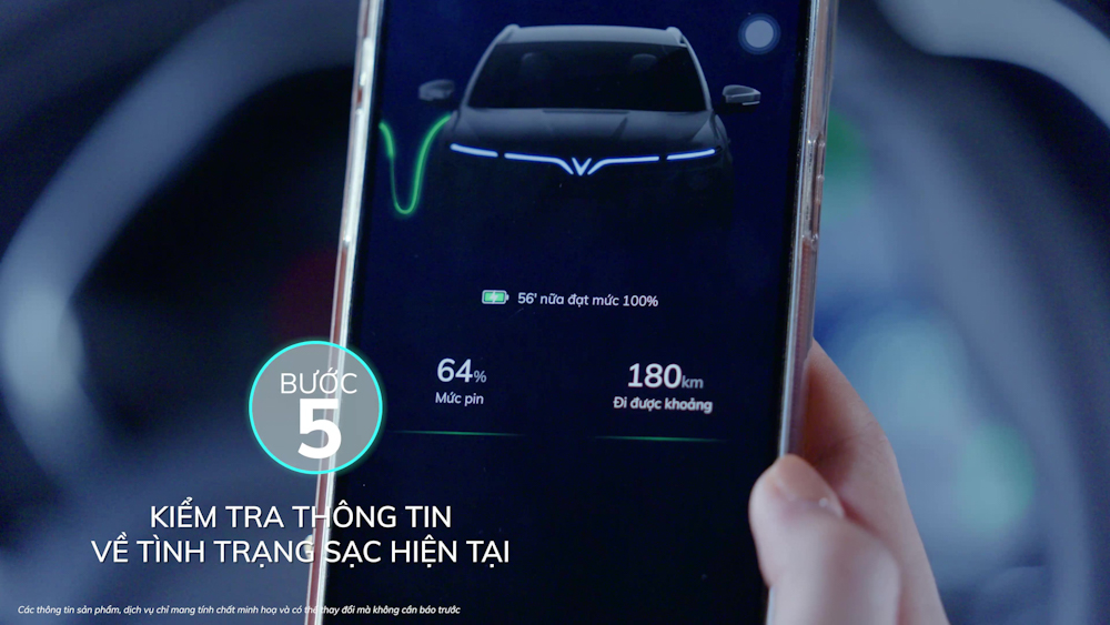 Bước 5: Khách hàng sẽ nhận được thông báo khi xe đã hoàn thành phiên sạc: khi sạc đầy, hoặc khi đạt tới trạng thái sạc, mức pin (SOC – State of charge) mà khách hàng mong muốn, hoặc khi hết thời gian sạc theo lịch đã đặt.
