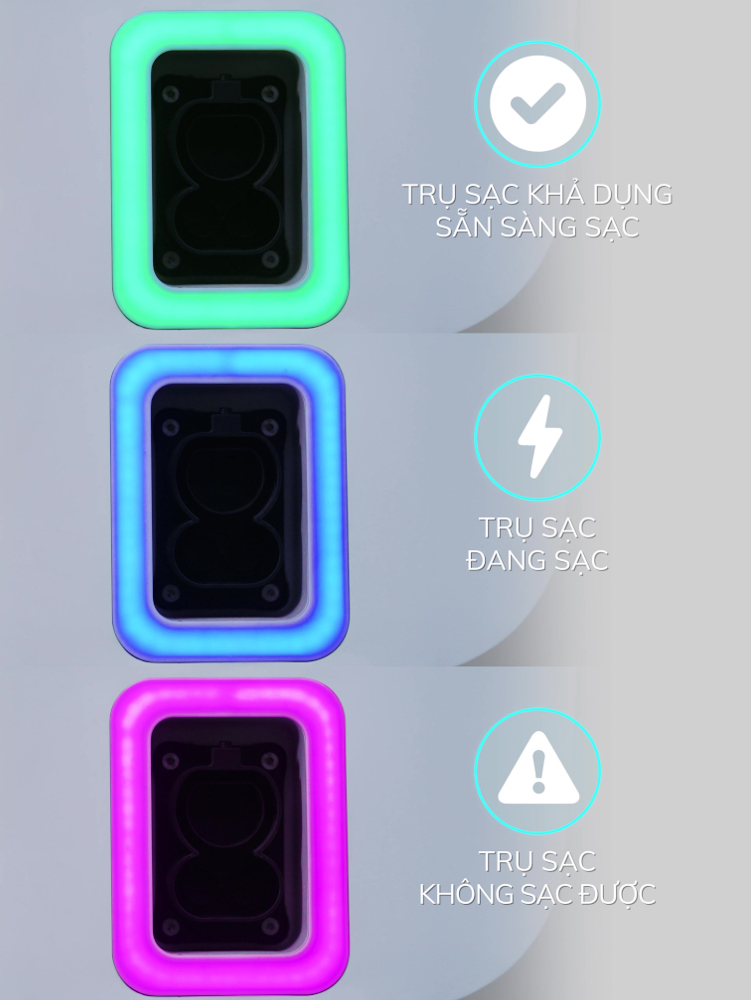 – Đèn LED màu đỏ hoặc không sáng đèn: Trụ sạc không khả dụng.