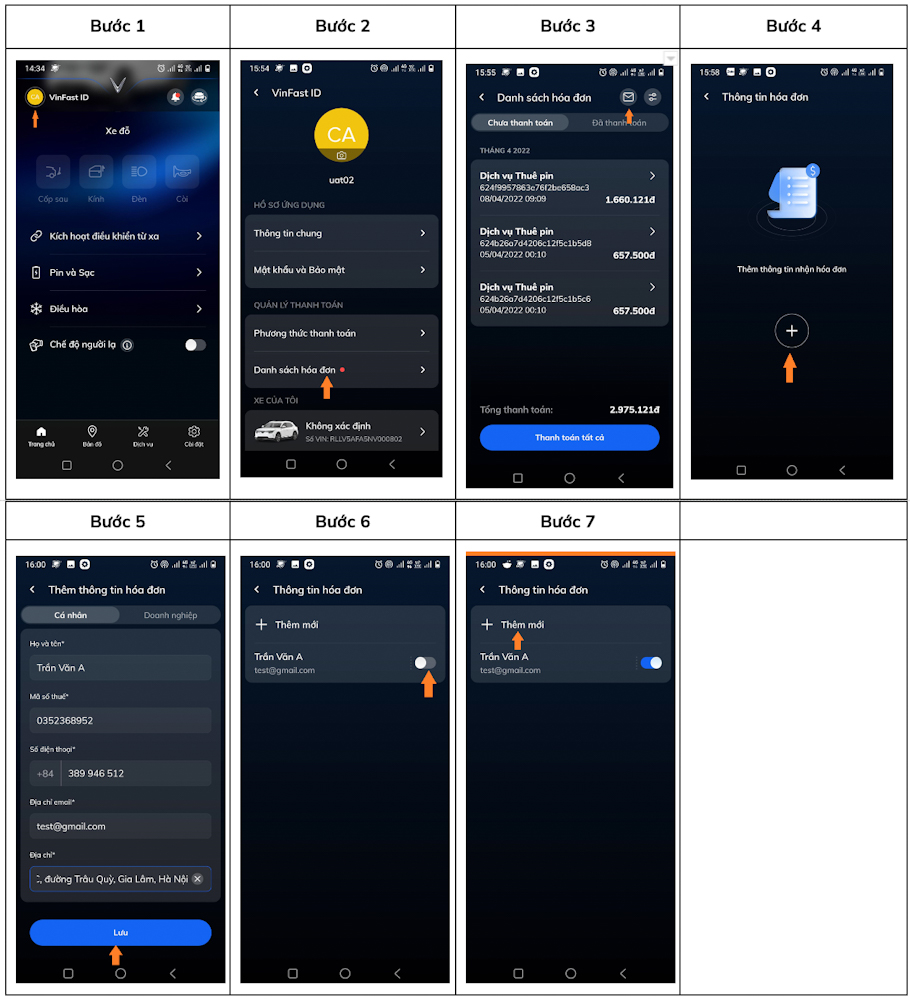 Hướng dẫn đăng ký thông tin xuất hoá đơn thông qua ứng dụng VinFast
