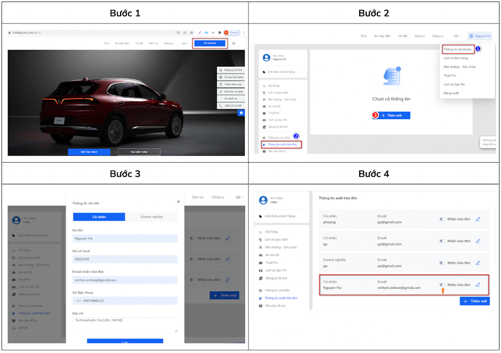 Hướng dẫn các bước đăng ký thông tin xuất hoá đơn thông qua website VinFast nhanh chóng, dễ dàng
